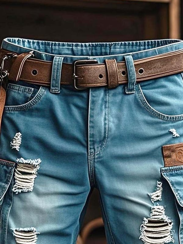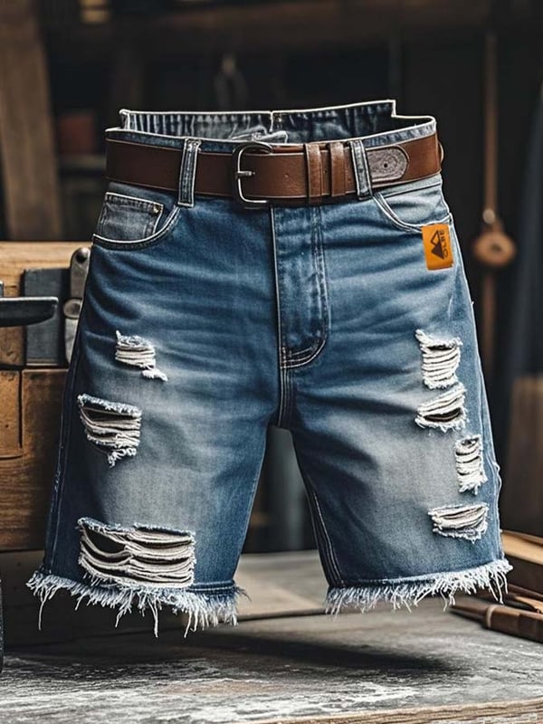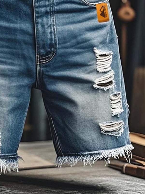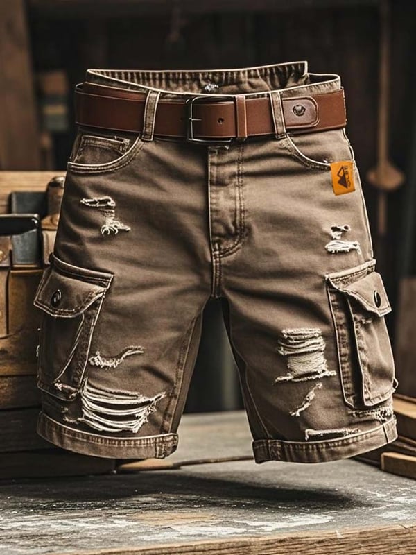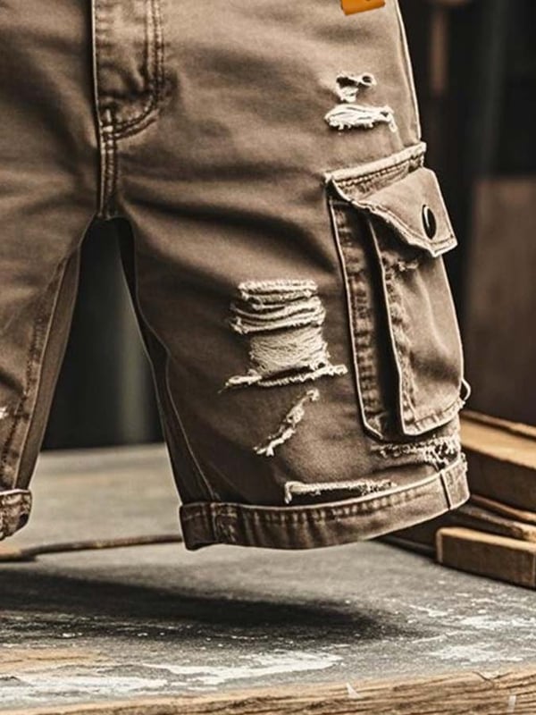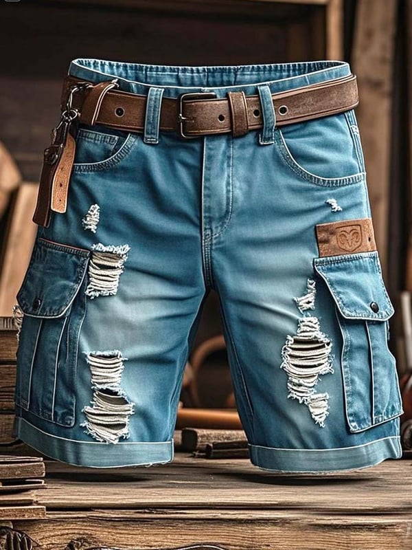 Men's Vintage Outdoor Functional Ripped Denim Shorts