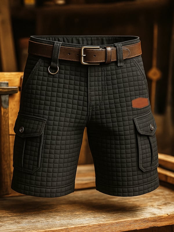 Men's Vintage Outdoor Cargo Shorts With Pockets And Functional Seams (With Belt)