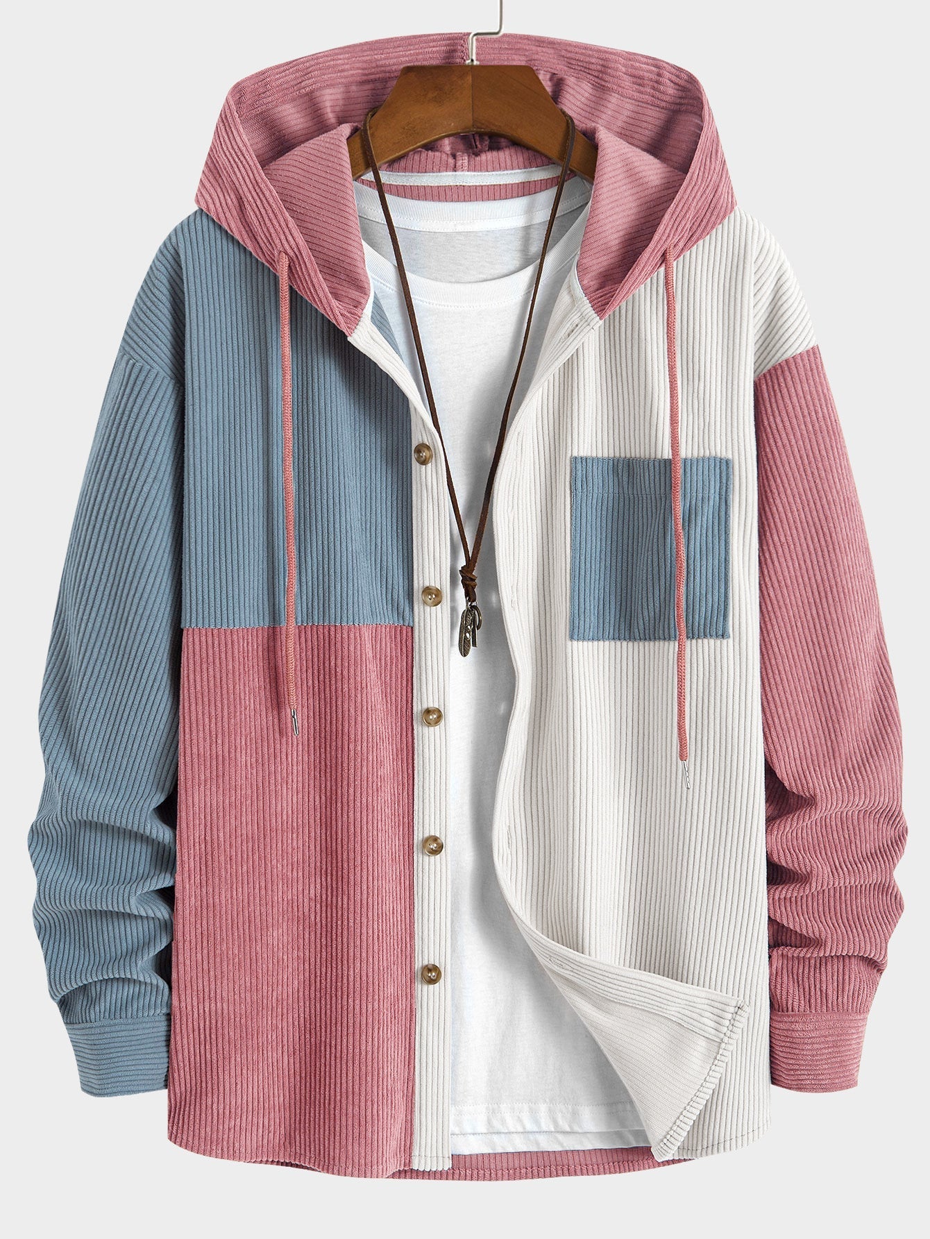 Elonzo - Colorblock Corduroy Hooded Shirt
