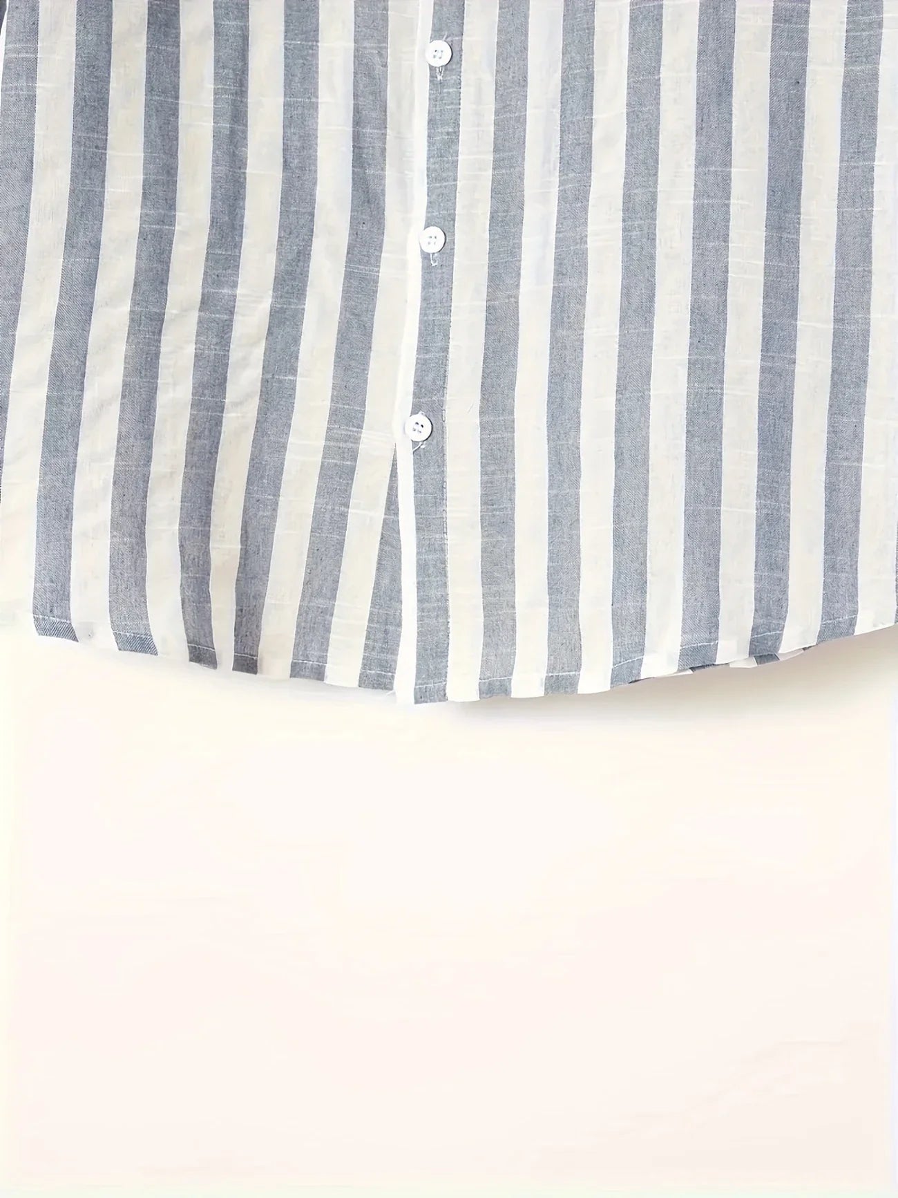 Bold Vertical Stripes for a Confident Look: The George shirt features striking vertical stripes that not only stand out but also create a slimming, elongated silhouette. This timeless pattern adds a refined yet trendy element to any wardrobe. It's perfect for men who want to make a statement without going overboard.