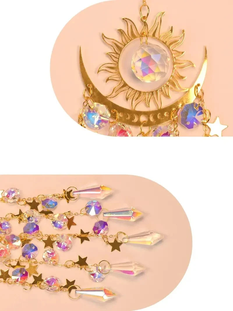 Illuminate Your Space with Celestial Elegance: Sun & Moon Crystal Charm!
