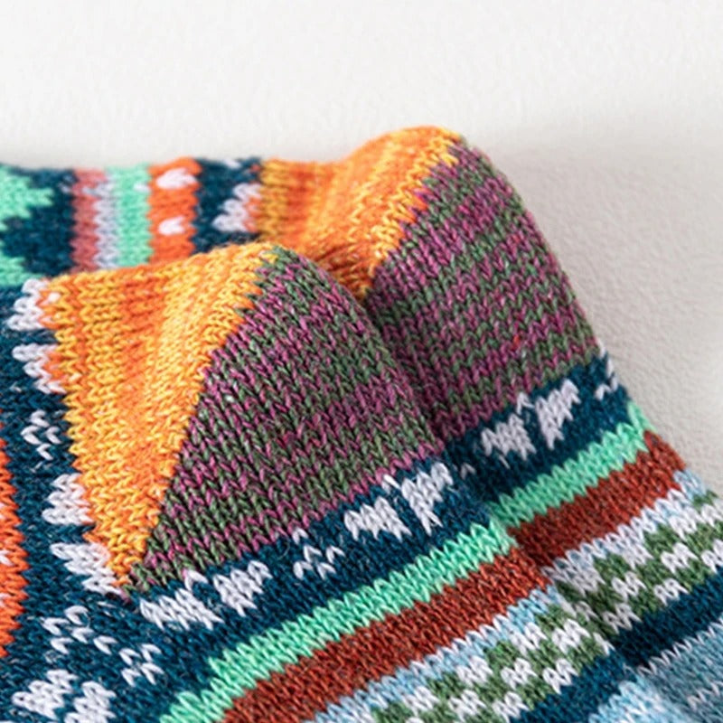 ✅Bohemian Designs : Featuring a variety of colorful and intricate patterns, these socks bring a touch of style to your winter wardrobe. Whether you're lounging at home or stepping out, their unique boho-chic aesthetic adds a fun and fashionable statement to your outfit.