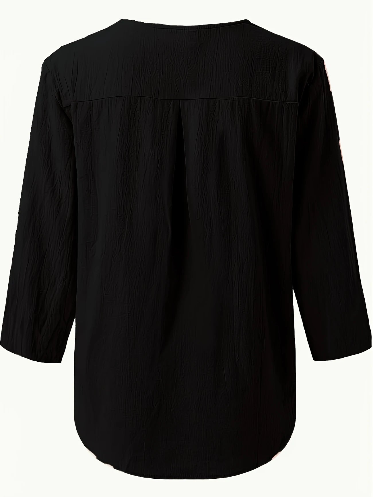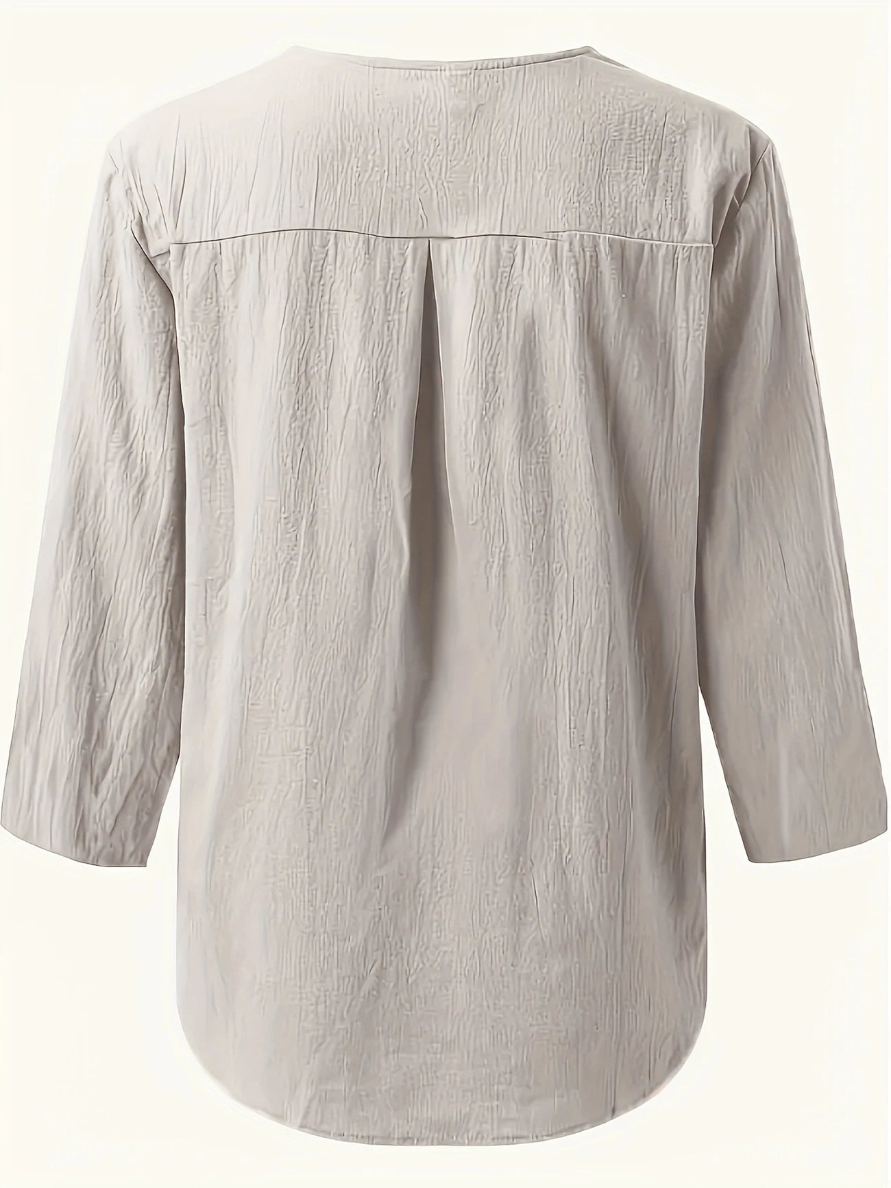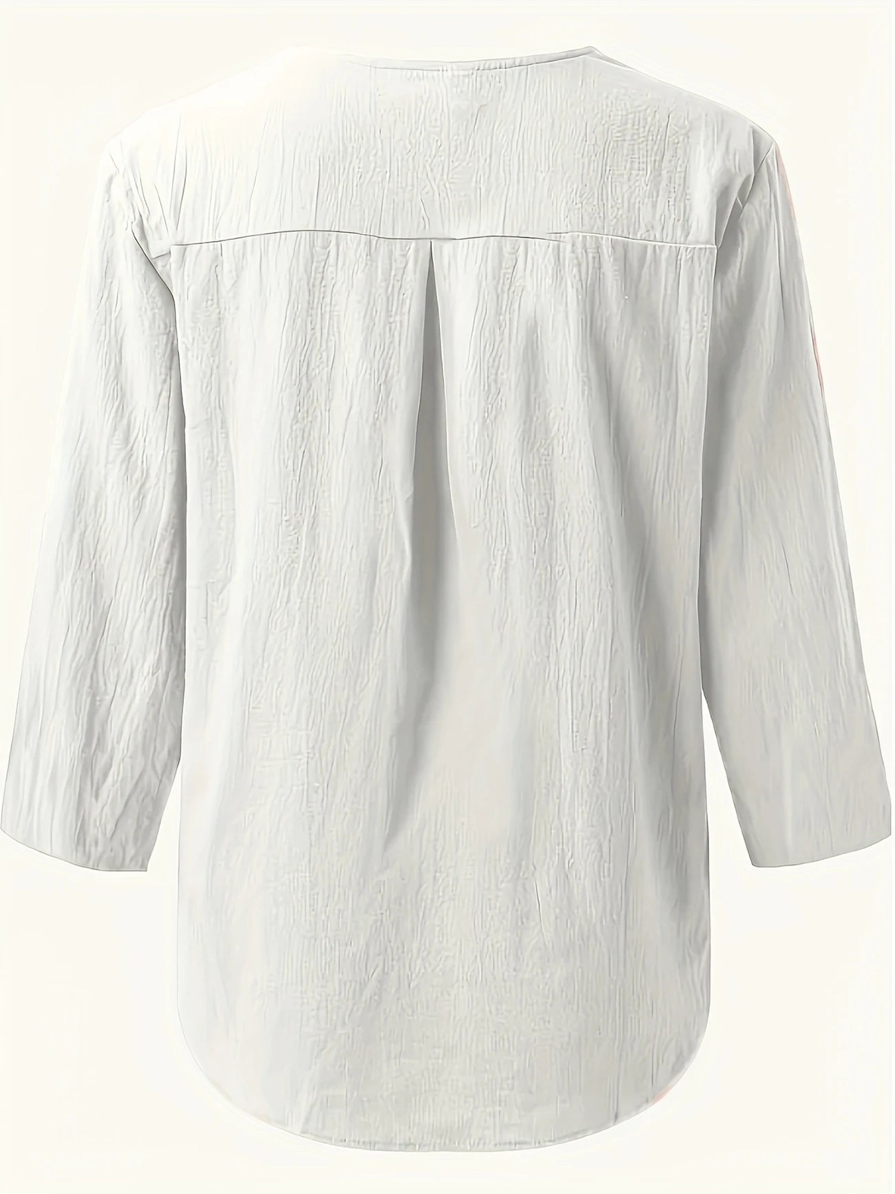 ✅Cotton-linen blend fabric: Mykaela is made from a breathable combination of cotton and linen that feels soft and fresh throughout the day. The material helps manage body temperature naturally, making it perfect for long wear in changing weather. It also adds a gentle, organic texture to the blouse. Ideal for casual comfort with a refined touch.