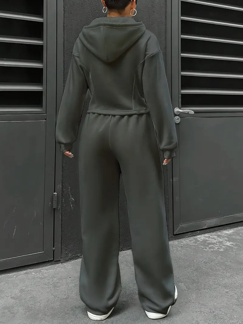 ✅Flattering Fit: The tailored yet relaxed cut of the hoodie and pants creates a balanced silhouette. It gently shapes the body without clinging, offering both style and comfort. The adjustable waistband and soft drape enhance the flattering fit for different body types.